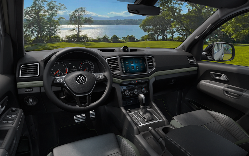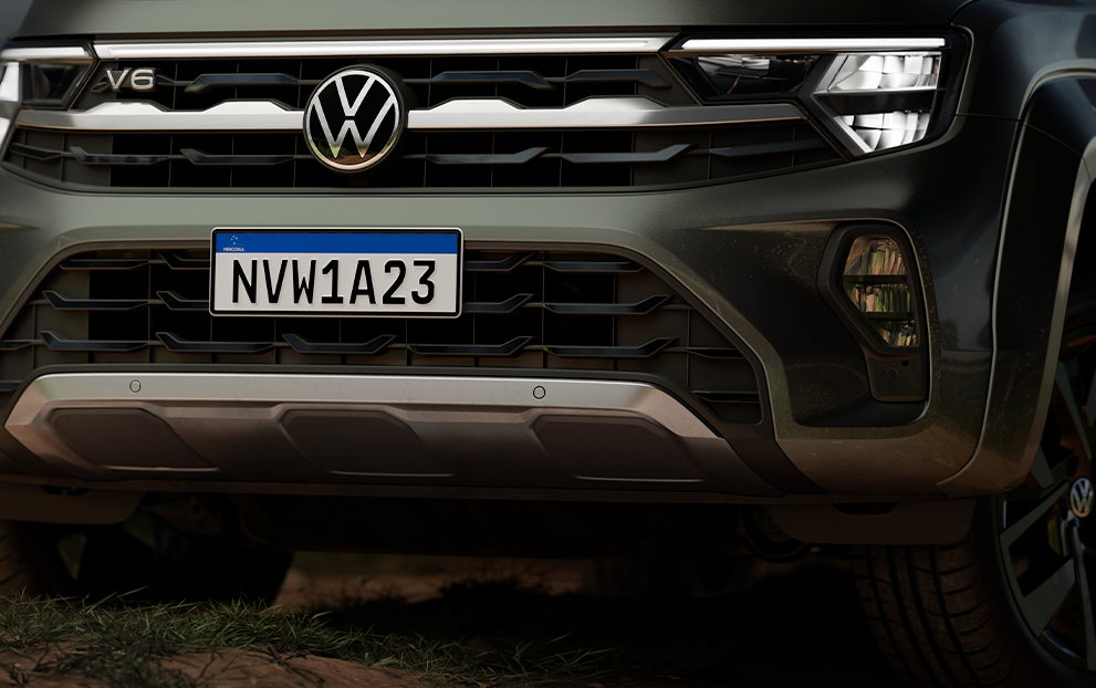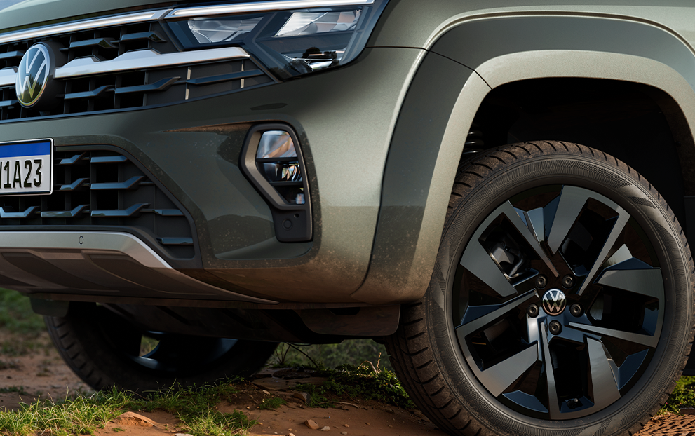 A Nova Amarok está mais bruta, renovada e imponente. O visual foi atualizado e a iluminação foi aprimorada, muito mais moderna e eficiente. A grade frontal iluminada (light strip) da Nova Amarok melhora a visibilidade em áreas de baixa luminosidade. Além disso, a picape tem faróis Full LED e rodas de liga leve 20”.